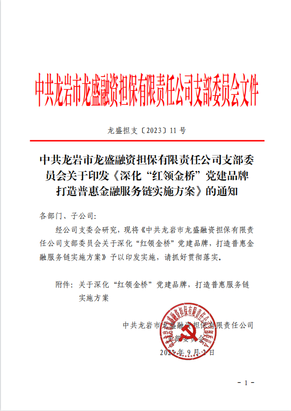 近年來,龍盛擔(dān)保公司黨支部以習(xí)近平新時代中國特色社會主義思想為指導(dǎo),以“四抓手”持續(xù)深化“紅領(lǐng)金橋”黨建品牌建設(shè),助推黨建與業(yè)務(wù)相融并促,匯聚起服務(wù)實(shí)體經(jīng)濟(jì)發(fā)展的強(qiáng)大合力。公司黨支部先后被集團(tuán)黨委、市國資委黨委評為“先進(jìn)基層黨組織”,公司連續(xù)兩年被市委、市政府評為“服務(wù)實(shí)體經(jīng)濟(jì)十佳金融機(jī)構(gòu)”,今年獲省屬企業(yè)投資入股5000萬元,成功引入國家融資擔(dān)?;鹇涞佚垘r。